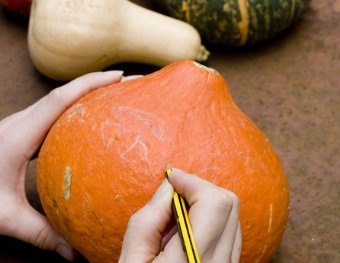 Halloweenkürbis - Eine Bastelanleitung Halloween steht vor der Tür. Am 31.10 ist es wieder so weit. Wir zeigen Ihnen, wie Sie aus Ihrem Speisekürbis ganz leicht einen tollen Jack O’Lantern schnitzen können. Bastelanleitung mit Step-by-Step Bildern! Jack O’Lantern Die Laterne gilt zudem auch als Symbol, um böse Geister abzuschrecken und ist heute das Symbol für Halloween. Eine eigene Fratze basteln Autorin: Dipl.-Soz. Christine Bulla 2 von 5 ![]() Ist der Kürbis komplett leer, haben Sie einen Hohlkopf. Nehmen Sie nun Ihren Stift und zeichnen Sie eine schaurige Fratze, bestehend aus Augen, Nase und Mund, auf. Zeichnen Sie hier keine zu filigranen Muster, da diese schwer mit dem Messer auszuritzen sind. Dremel |
