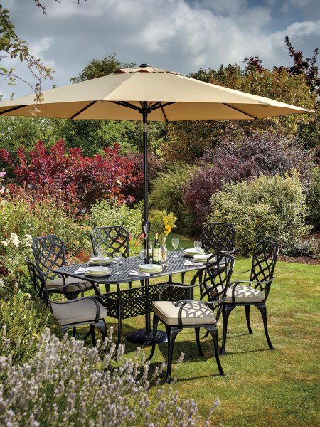 Bequeme Sitzmöbel für draußen Nichts wie raus damit! Diese Sitz- und Gartenmöbel versprechen Lifestyle pur auch im Freien. 11 von 16 ![]() Perfekt für Outdoor-Dinner-Partys: Die Kombination "Hartman Verona" umfasst einen Sonnenschirm, einen rechteckigen Tisch und sechs Stühle mit gepolsterten Sitzen. Fotocredit: Tesco Jubilee & Summer Living 12 |